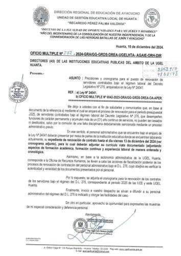 OFICIO MÚLTIPLE Nº 0318 -2024-ME-GRA-DREA/UGEL.HTA/AGP.