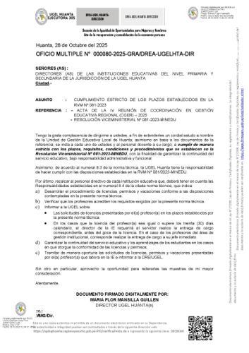 OFICIO MULTIPLE Nº 0156-2025-GRA/GG-GRDS-DREA-UGELHTA-DIR