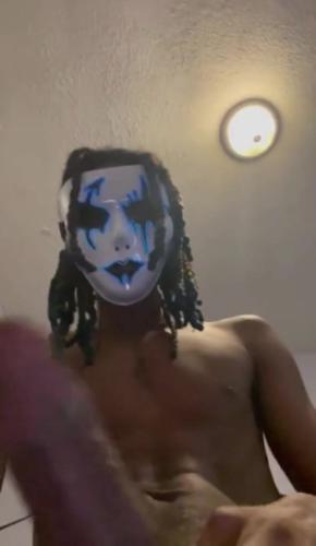 MASKED UP BLACK DREAD BOY BEATING HIS BIG DICK (NO CUM...