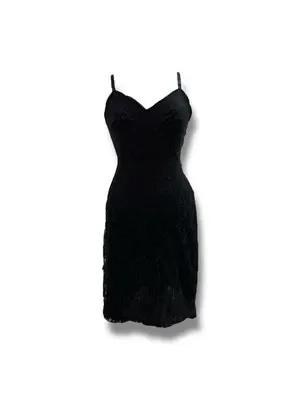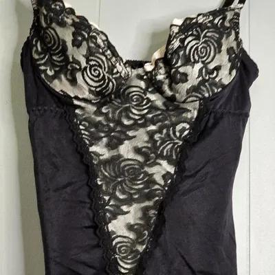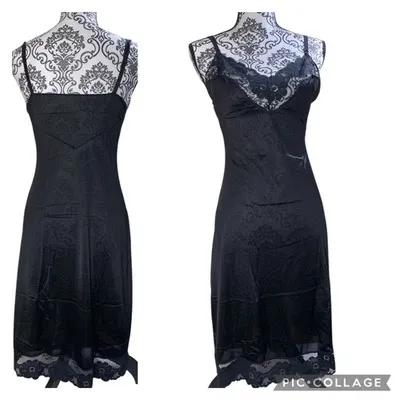 SHADOWLINE Black Silky Nylon Full Dress Slip Lingerie Lace 36...