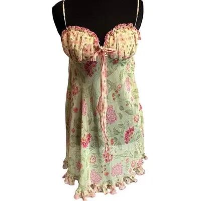 VTG 50s Red Rose Lace Dress Slip Lingerie Nylon Coquette...