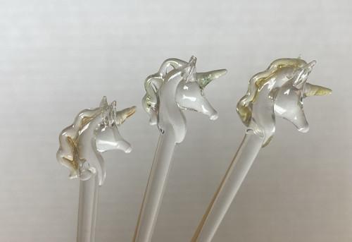 Glass Unicorn 7" Drink Stirrers Swizzle Sticks Lot of 3