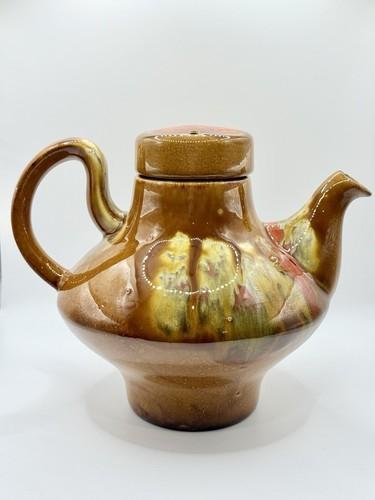 Bar Harbor Pottery Tea Pot Orange Brown MCM Art Drip Glaze...