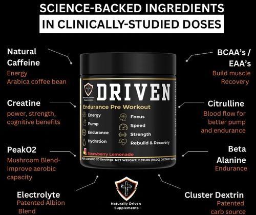 Driven Natural Pre Workout – Clean Energy, Endurance & Focus...