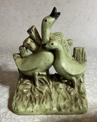 Antique Gaggle Of Ducks Paint Cast Iron Door Stop -Good Paint