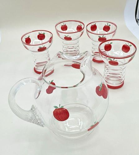 Vintage Dunbar Tomato Apple Juice Pitcher w/ 4 Ringed Glasses...
