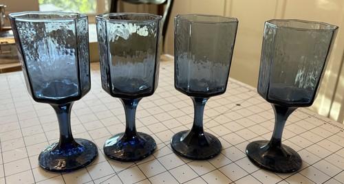 (4) LIBBEY Dusky Blue Octagon 8 Paneled Goblet Stemmed Wine...