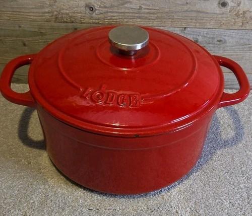 Lodge Enameled Cast Iron 5.5 Quart Dutch Oven Cookware Pot, Red