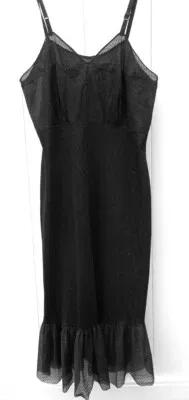 Vtg Full Slip Nylon Dutchess Sheer Chiffon Yoke Hem Black Pin...