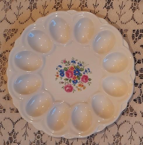 Deviled Egg Tray Plate Platter Vintage Floral Ceramic E&R...
