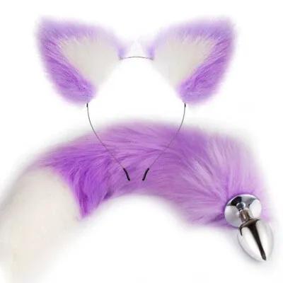 1set(2pcs) Faux Fur Animal Cat Ears Headband Tail Metal Set...