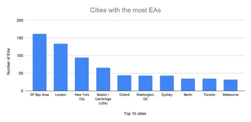 EA Survey 2019: How many EAs live in the main EA hubs...