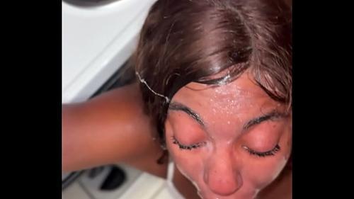 Ebony teen get load of cum after blowjob and hard pounding live...