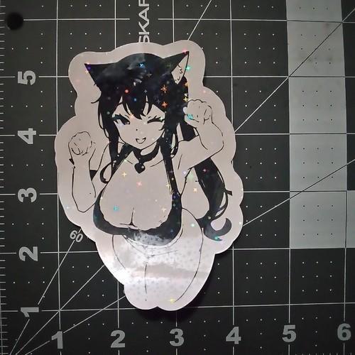 Holographic Ecchi Waifu Anime Sticker 4"