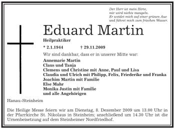 Traueranzeigen von Eduard Martin | trauer-rheinmain.de