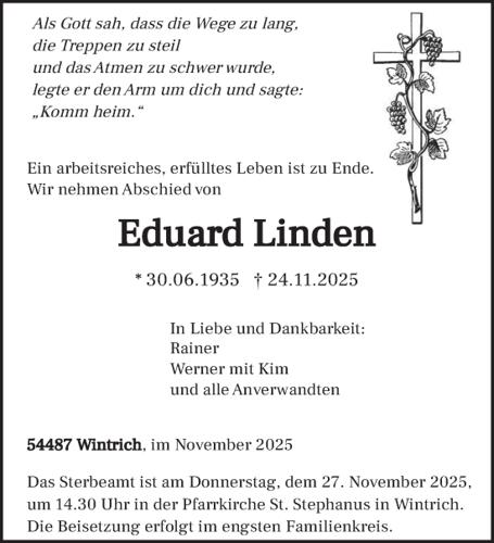 Traueranzeigen von Eduard Linden | Volksfreund.Trauer.de