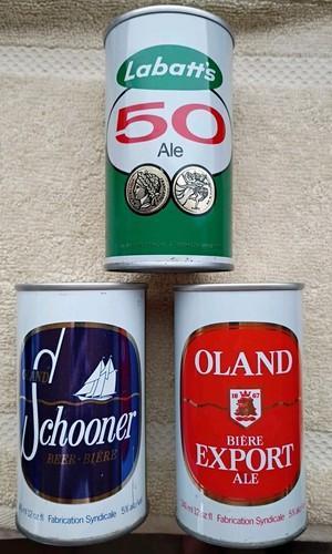 3 VINTAGE DIFFERENT CANADIAN EMPTY BEER CANS - SCHOONER - OLAND...