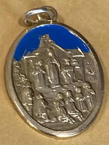 Our Lady of Knock pray for us goldtone & blue enamel pendant...