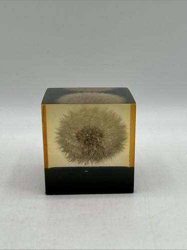 Vtg Dandelion Cube Paperweight Encased In Lucite Resin Acrylic...