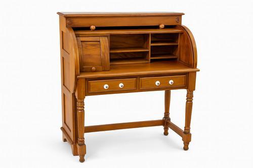 Antique Solid Oak Roll-Top Writing Desk – Compact Entryway...