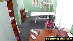 Doc examines cute pussy on hidden cam in his office