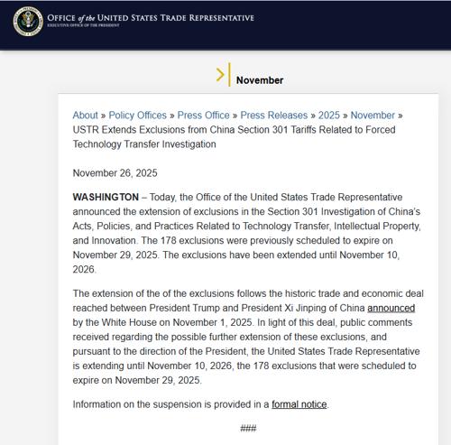 US Extends Tariff Exemptions on Some Chinese Imports for One Year