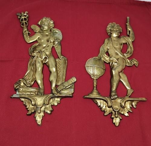 Brass Cherub Wall Hanging Plaque Pair Medical Caduceus...