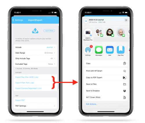 Exporting entries