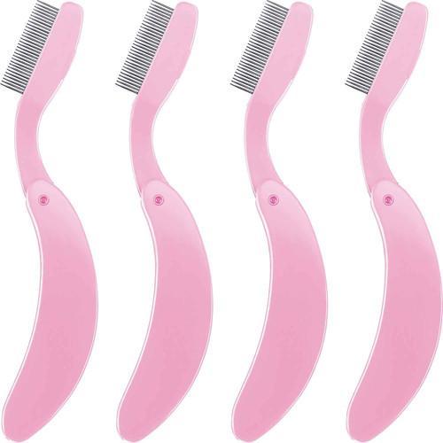 4 Packs Folding Eyelash Comb, Stainless Steel Metal Teeth...