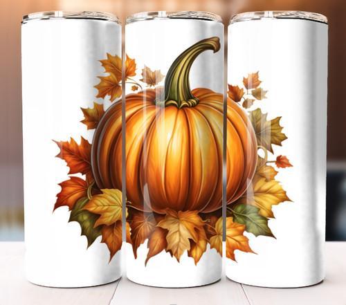 Pumpkin Fall Design, Skinny 20oz Tumbler W/ Lid & Straw