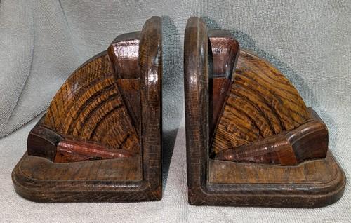 Beautiful MCM Art Deco Style Wood Bookends Pair Fan Shape Wooden