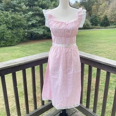 FANTASY LINGERIE Babydoll Dress Gingham Lace Milkmaid...