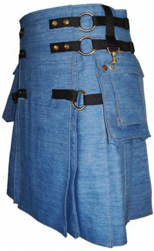 Fashion Denim Leather Pocket Kilt | Men Kilts For Sale | Boys...