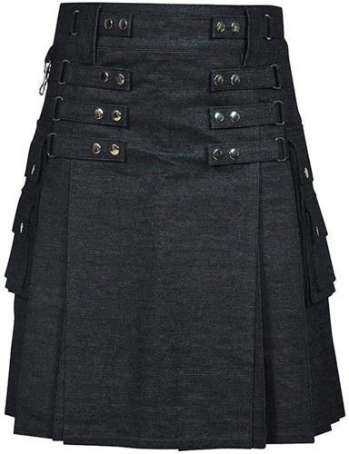 Denim Fashion Kilt Utility | Best Denim Kilts | Denim Black Kilt