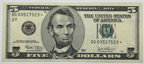 2003 $5 Federal Reserve Note SN DG03517523* STAR Uncirculated