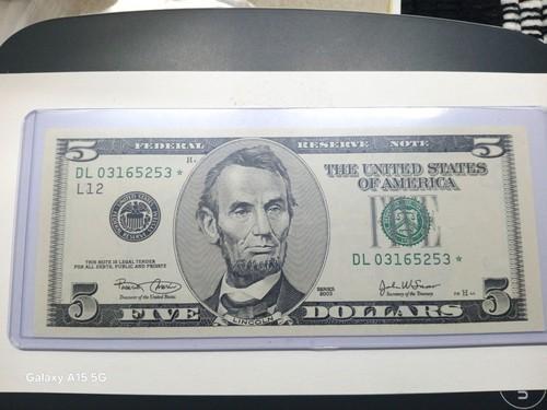 2003 $5 ***STAR NOTE*** DL03165253* FEDERAL RESERVE NOTE...