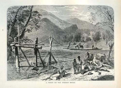 Ferry on the French Broad, Antique 1872 Appalachian River...