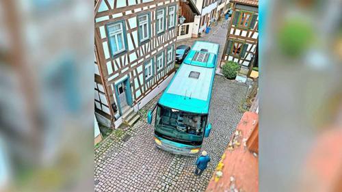 Kurioser Unfall in Schiltach: Bus steckt in enger Gasse fest...