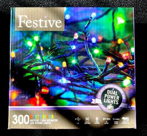FESTIVE DUAL POWER LED LIGHTS 300 MULTI-COLOR Battery/USB
