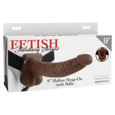 Fetish Fantasy 9" Hollow Strap-on With Balls Brown - Realistic...