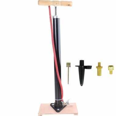 Zwarte fietspomp staand met houten handvat inclusief 4-delige...