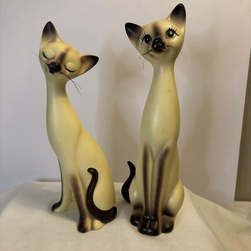 Vtg MCM Norcrest Siamese Cat 10" & 11" Ceramic Figurines Made...