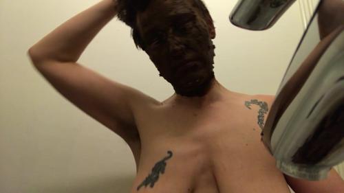 Scat girl gets filthy rubbing shit on her tits and pussy while...