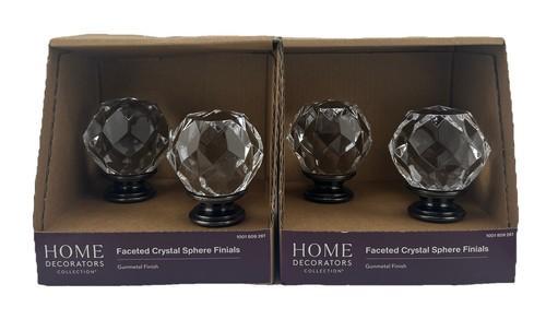 Faceted Crystal Sphere Curtain Rod Finials- Gunmetal - (4 Total...