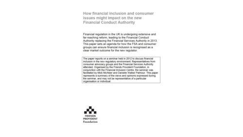 How financial inclusion and consumer issues might impact on the...