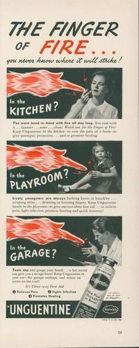 1942 Unguentine Burn Cream Finger Of Fire Kitchen Play Garage...