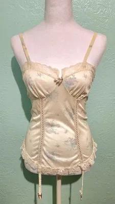 Vintage Cream Floral Lingerie Top and Original Fishnets Small...