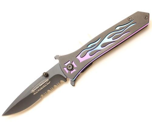 Tiger Black Spring Assisted Knife w/ Iridescent Chopper Flame...
