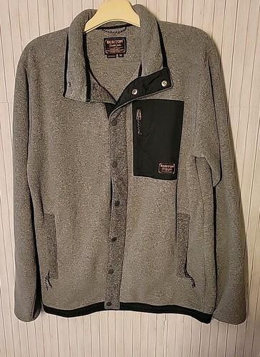 Burton Gray Hearth Fleece Snap Jacket Mens Medium Chest Pocket...