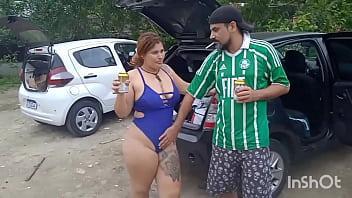 Ruiva na floresta com o marido encontra um cara para chupar e...